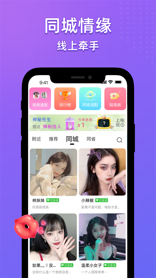 1、在这里进行同城交友,帮助用户在线寻找自己身边的美好。