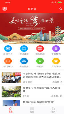 1、“看秀洲”新闻客户端由秀洲区传媒中心荣誉出品,设有新闻中心、在线读报、视听新闻、专题集锦、部门联动、民生服务、微视频、互动活动八个栏目,整合了嘉兴广播、电视、报纸等多家媒体资源平台,实现了与禾点点客户端内容方面的全面互通,实现一稿件多发,每天可为用户权威、快速发布本地资讯。