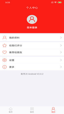 4、在我的页面,查看我的资料并进行编辑,或选择推荐给朋友、给我们评分等