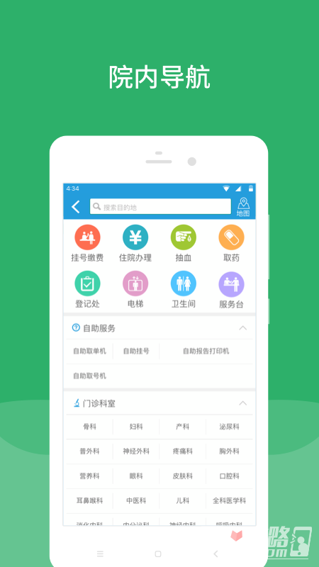 1、有了地图的帮助不仅实时定位而且能够为你指引科室方向