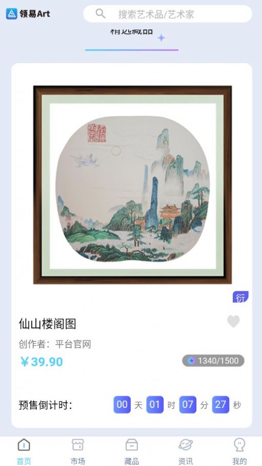 领易Art这是一款可以轻松下单的手机数字藏品商城,用户可以使用这款app买到自己需要的商品,这里拥有丰富的商品资源,各种不同类型的数字藏品可以在线进行自由搜索和查找,分类详细,方便用户在线进行查找,并且我们可以使用这款app进行数字藏品的在线管理,为用户带来很大的便利。
