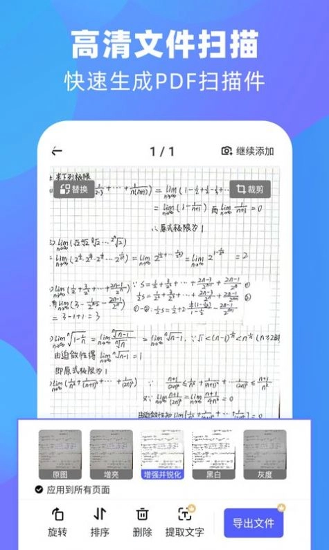 自动快速对文档进行增强,并有多种模式可以选择,让您的扫描更加清晰。