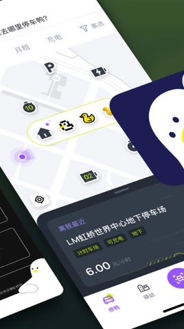 停鸭是一款停车软件,该软件鼓励车主和车位主之间建立合作关系,互相帮助,形成良好的社交氛围,这也为车主提供了一个寻找车友、获取交通出行资讯的平台。实时更新停车场的空闲车位信息,方便车主在车来车往的情况下快速找到符合需求的车位。