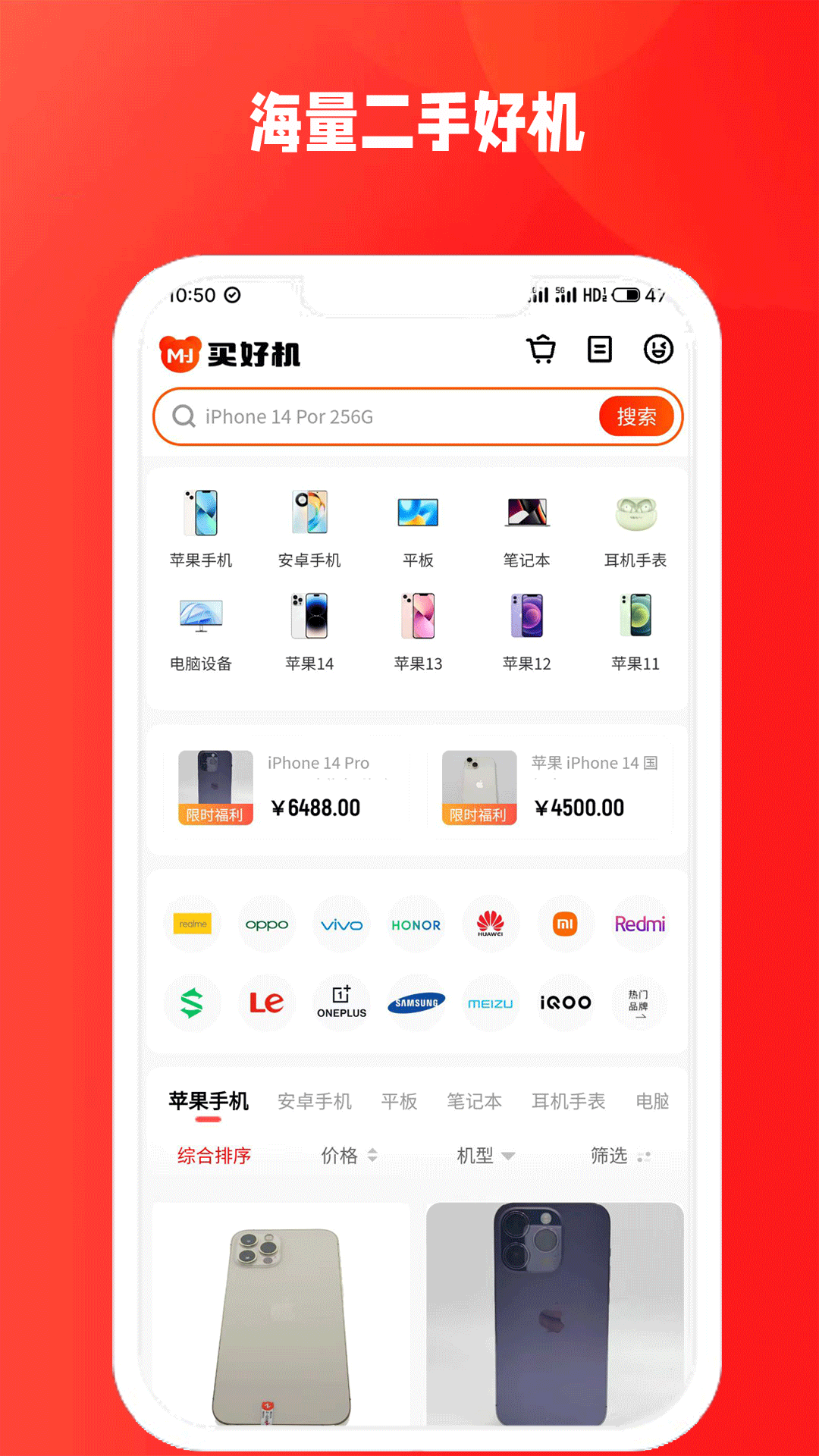 买好机app是一款专业的线上二手手机销售服务平台,致力于为用户提供全方位的验机服务,以确保每一位用户购买到的二手手机都是真实可靠的,平台还有专业的验机服务,严格的质检工序保证每位顾客购买的手机都是放心的,还有多种优惠活动能以最优惠的价格拿到心仪的手机,有需要的朋友快来下载使用吧。