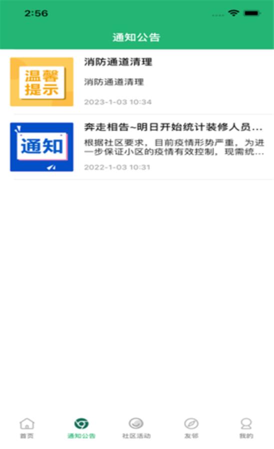 3、实时了解小区物业公告和活动信息,包括社区活动、公益活动、小区维修等。