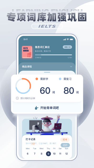 3.进入雅思的专项题库,做好全面的知识量的增加和巩固,快速掌握背单词的方法。