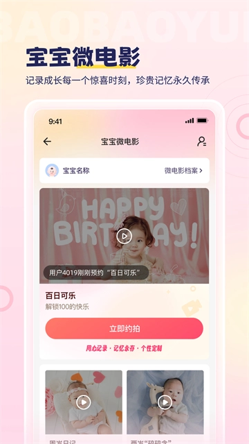 一款专业的母婴服务一体化综合软件,为用户提供了宝宝微电影,你可以为宝宝提供珍贵的出生影像资料,记录宝宝脱离母体之后的一系列过程,包括脐带护理、身体检查、身份手环、脚印采集、身高体重、首次包裹等环节,这将是送给宝宝的第一份纪念意义非凡的珍贵礼物。此外,软件支持照片、视频、日记等多样化的记录方式,让家长可以随时随地的记录宝宝的变化。