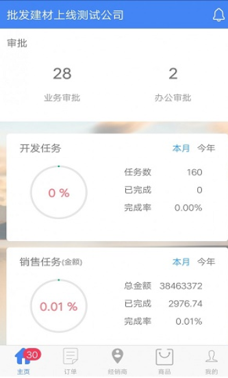 2.软件一共分五个功能模块,订单模块、首页模块、经销商管理、商品管理、个人中心。