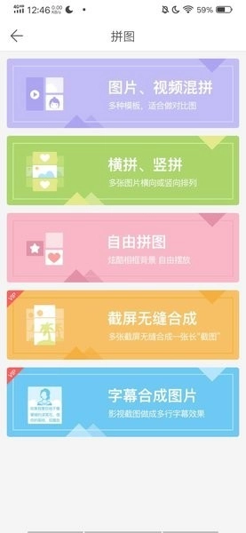 分屏视频:分屏视频支持封面+多张图片或视频的组合方式,可以自定义背景音乐或录音,图片放大播放,效果炫酷。