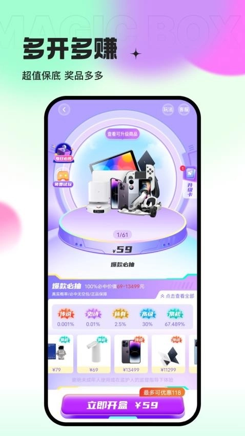 2、专业、方便、实用的盲盒软件,提供了各种类型的盲盒商品、高品质的消费体验和专业的社区交流功能;