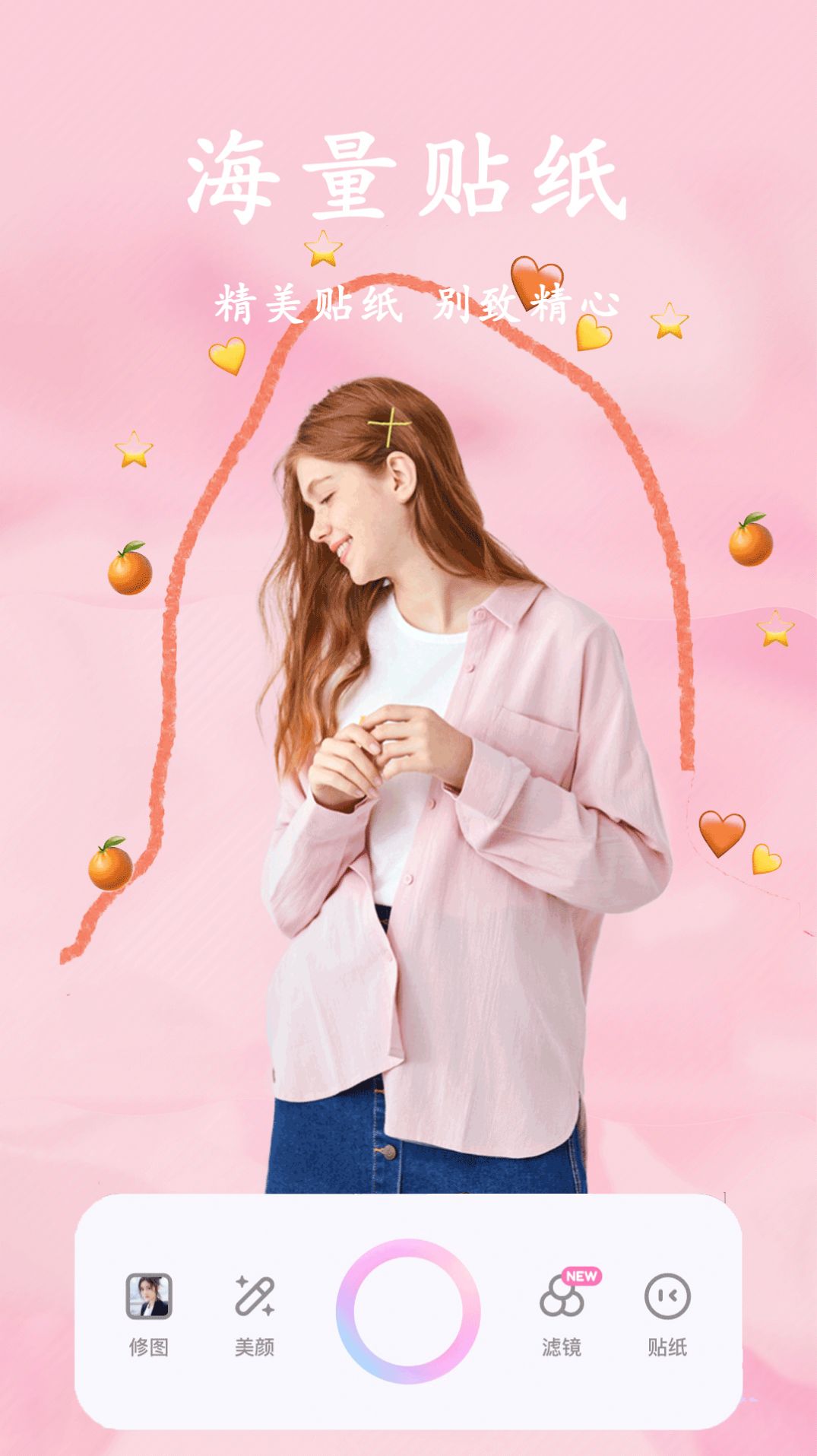 1. 甜美颜自拍相机采用清新、甜美的界面设计,色彩温暖柔和,给人一种温馨可爱的感觉;
