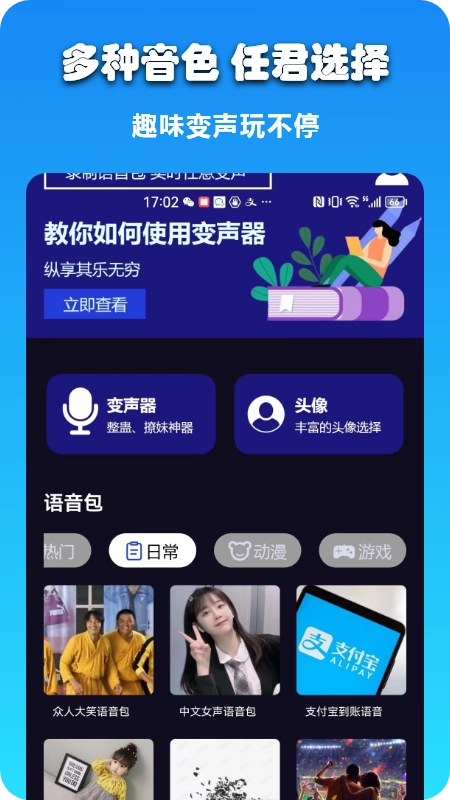 3.提供了多种不同的音色,可以改变自己的性别和年龄。