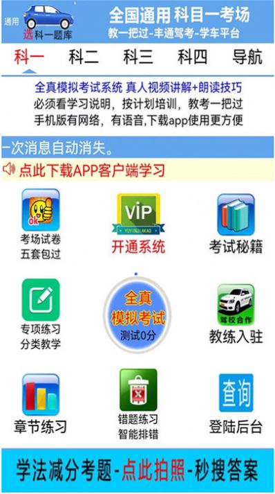 1、集科目一、科目四学习内容于一体的综合性学习平台。不仅包含了所有的驾考知识点,而且还有最新的考试动态和考试技巧,是一款全面、细致、有趣的学习软件;