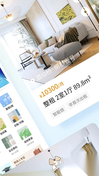 1、VR看房功能,用户可以通过VR技术在手机上进行360度全景看房,真实感觉到房屋的空间和布局,提升租房决策的准确度;