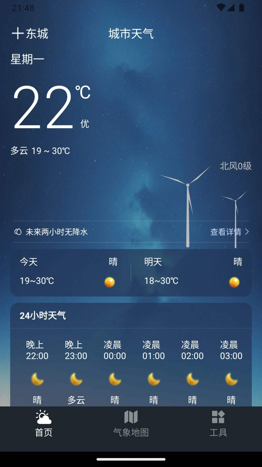 逐时预报,实时掌握24小时天气变化,当天温差提前预防。