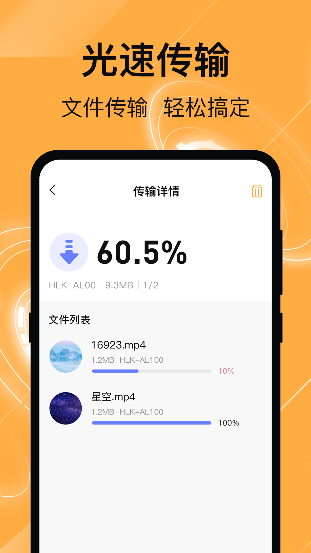 60秒轻松闪电换机,传输速度是WiFi蓝牙的66倍,1秒传音乐、5秒传电子书、10秒传电影视频。