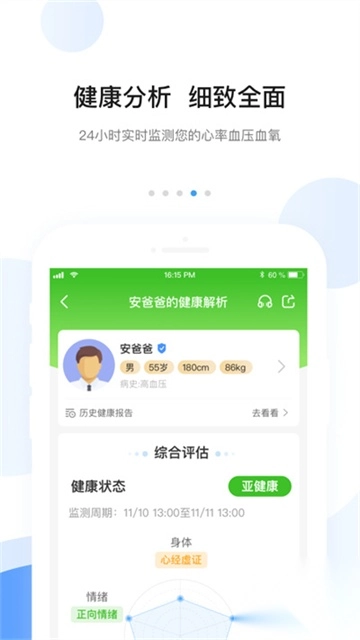 1、线上只要连接智能穿戴设备,可以全天候监测身体健康。