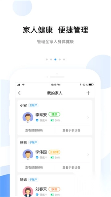 4、可以在这里管理一家人的身体健康,大家可以及时绑定。