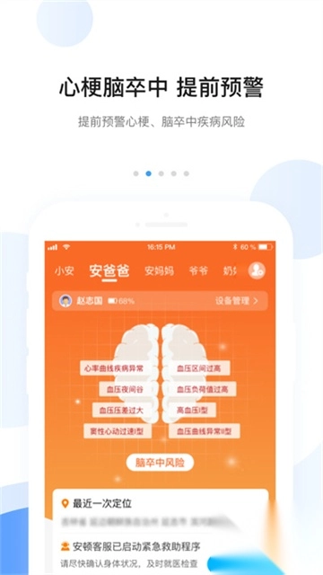 预警救护:安顿心脑监测预警中心触发心梗、脑卒中疾病风险预警,人工客服介入,在用户有需要的情况下,提供每年一次的120免费救护车服务。