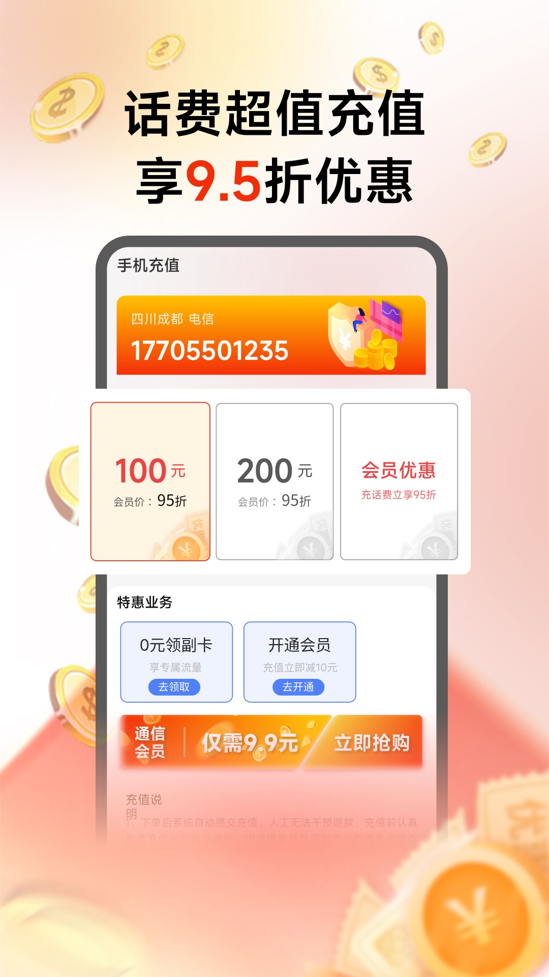 1、提供支持和服务,在使用畅购优选话费充值软件过程中有问题可以随时咨询;