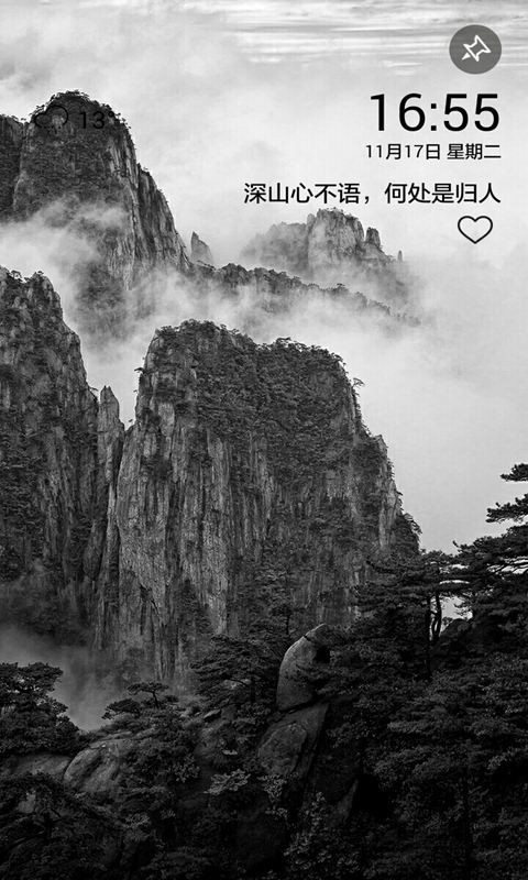 锁屏:手机锁屏界面,展示精美壁纸和配词,并显示时间,日期,天气,相机等,可点赞,可分享,便捷操作,点亮惊喜;