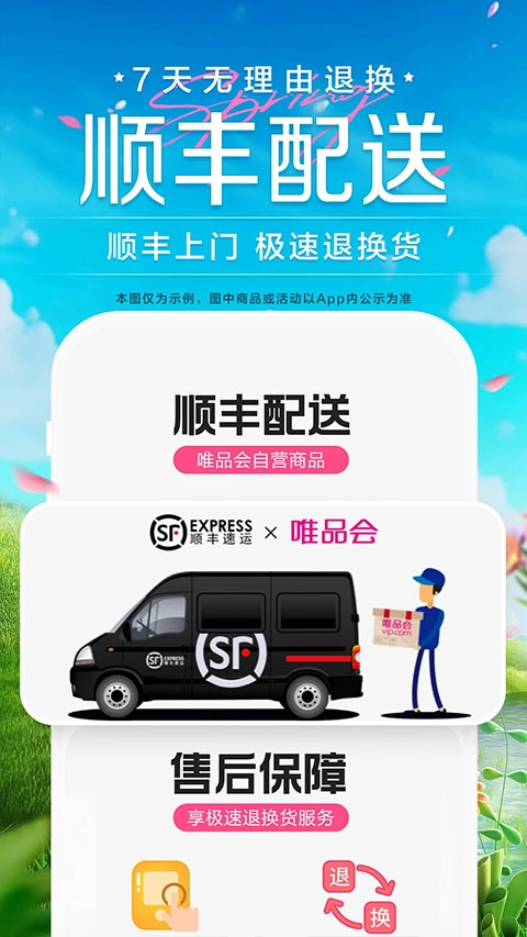 7天无理由退货,自营商品免费上门收件(自行寄回返10元唯品币);