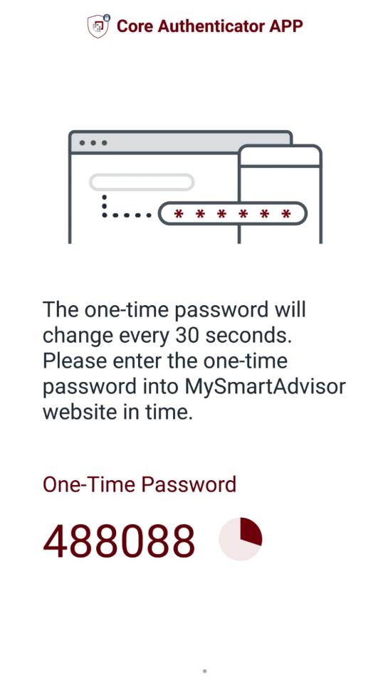 3.双重认证请您将核聚保安码app产生的一-次性密码输入mysmartadvisor进行双重认证。