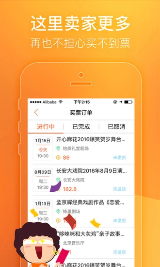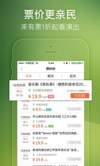 3、独家推出拼手气抢票活动,让普通用户也有机会以非常低的价格获取到热门演出门票。