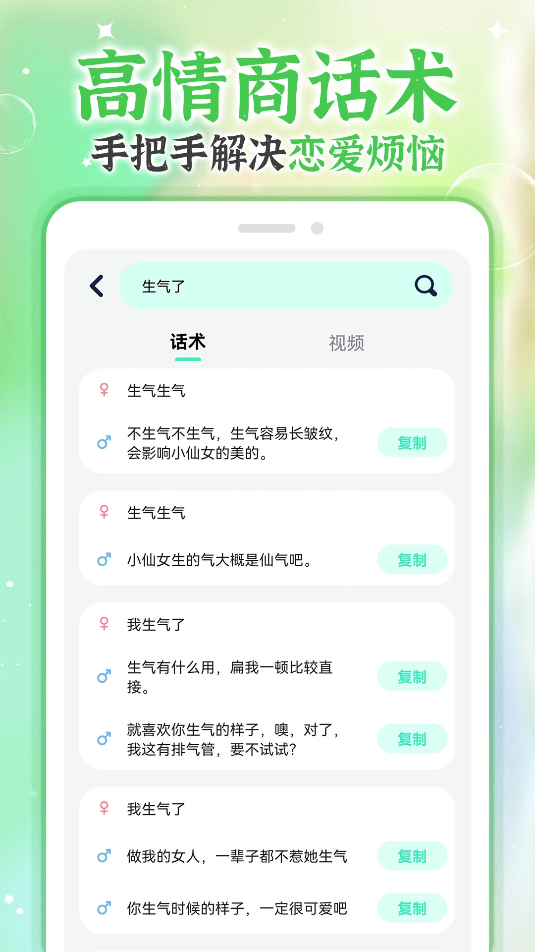 1、高情商恋爱话术,可以帮助用户手把手的解决恋爱烦恼。