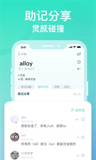 -专为年轻人准备,界面清新优雅,行云流水般的学习体验,“闪卡”学习模式
