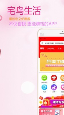 宅鸟生活app是一款优惠购物比价软件,宅鸟生活app全新界面设计搜索更方便,支持淘宝口令搜索功能,精准找券,超多大额券等你来拿,里拥有各大购物平台的商品优惠券,您可以在线随时随地的领取使用,让自己的的每一次购物能省则省,让自己成为一名会省钱购物的达人;还有大额的商品优惠券,折扣力度让您意想不到,每一次的购物绝对是买到赚到,购物可以比别人比花更少的钱,轻轻松松就可以进行购物省钱,是一款网购必备省钱工具!有了宅鸟生活APP,省钱又生钱!每天上新专享优惠券商品,与百万商家合作,人工筛选,让您购物更省钱。