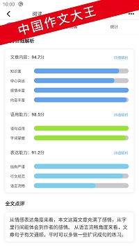 1、而且还提供了各种批改后的详细报告,可以全方位的了解孩子的作文情况;