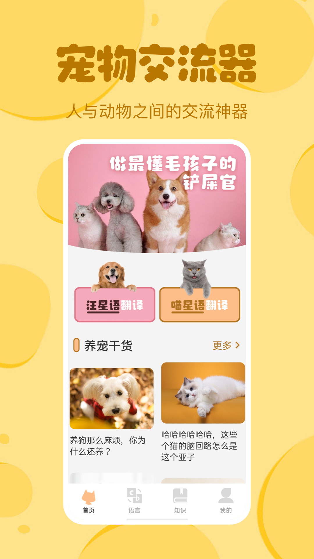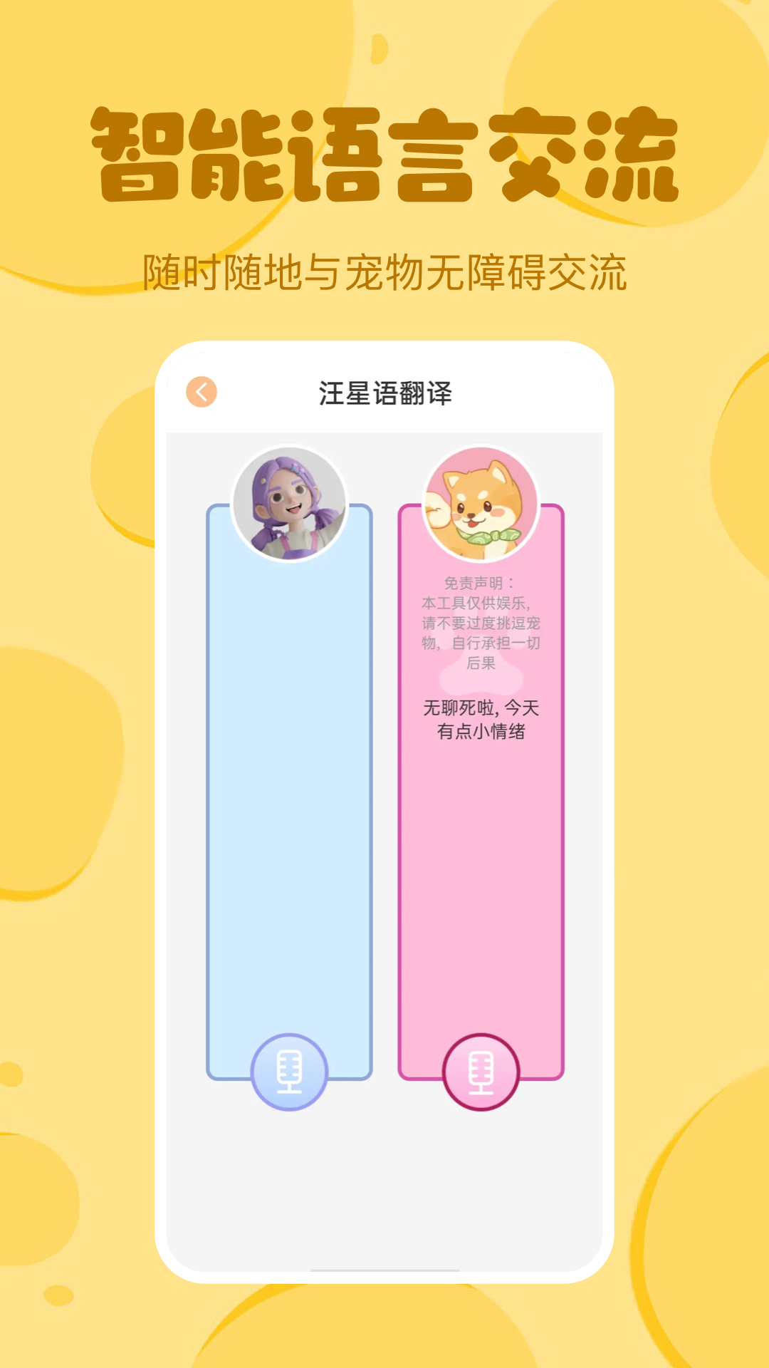 1、专为养宠物的人打造的翻译软件,让你了解宠物的想法。