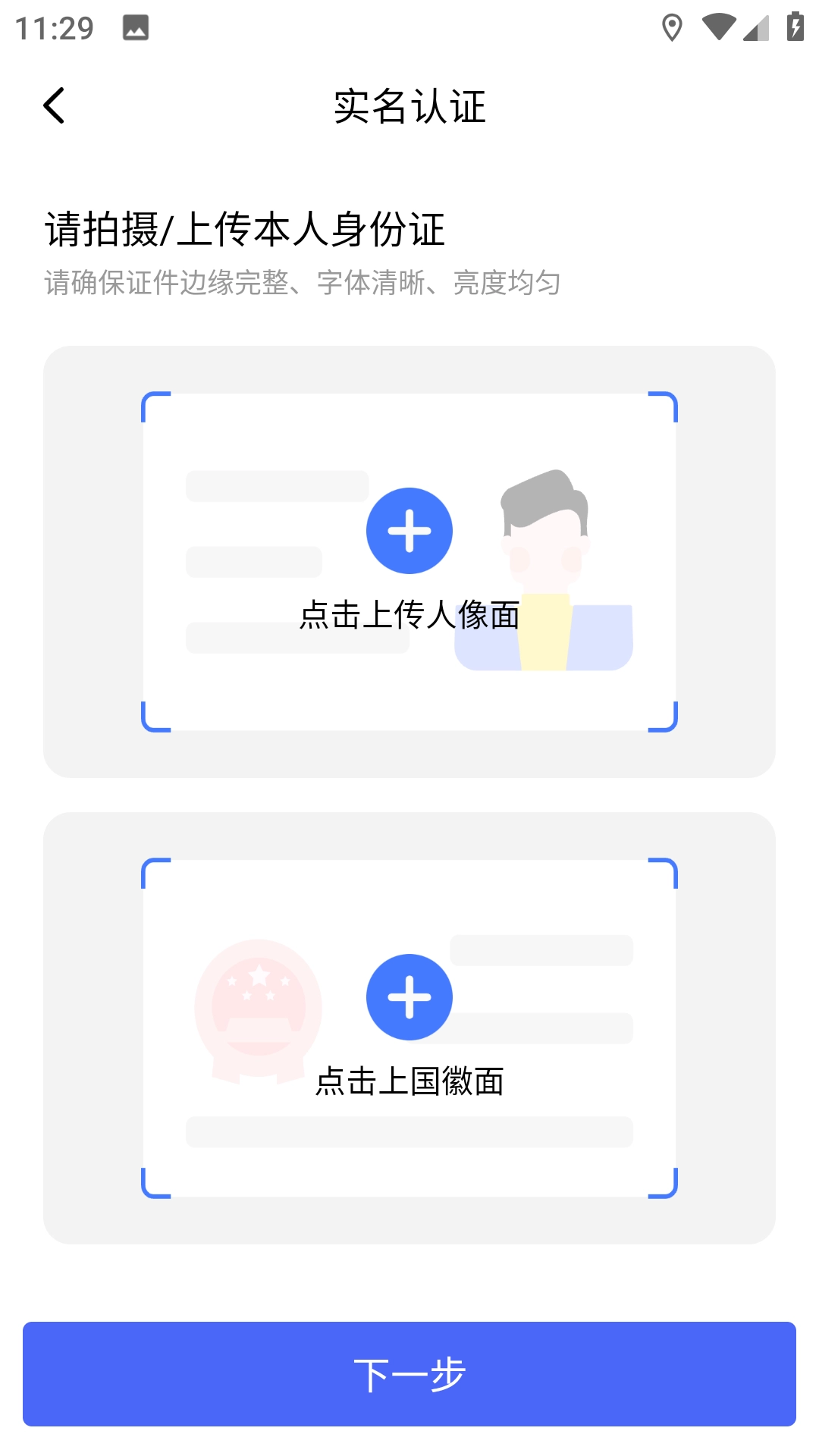 4.在实名认证页面,填写姓名并上传身份证进行认证