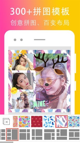 300+拼图模板、实用滤镜、纹理、美图贴纸