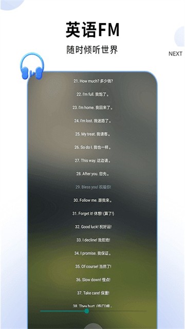 *英语口语练习:每天提供英语口语练习功能,用户可以通过模拟对话、口语训练等方式来提高口语表达能力。