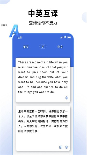 2、精准的中英文互译:该软件能够准确翻译中英互译,用户可以方便地了解和运用不同语言之间的表达。