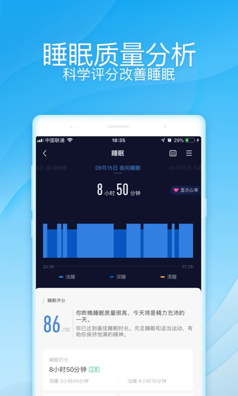 睡眠质量分析,科学评分改善您的睡眠,更好帮助您每晚睡觉更好,睡眠质量有改善;