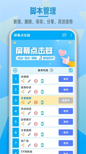 内置脚本工具箱为您提供现成的免费实用的手机脚本辅助点一点功能;