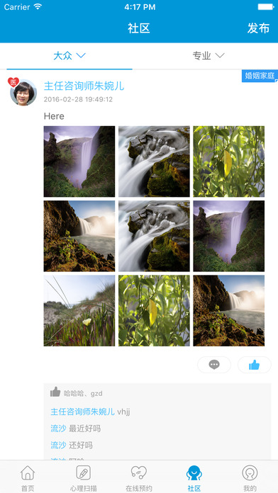 4、加入心悦社区大家庭,与咨询师在线互动。