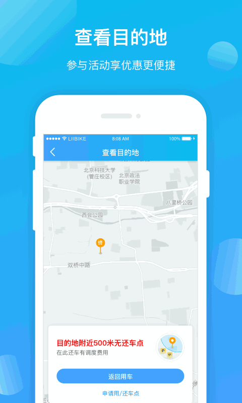 用户可以通过锂市民共享电动车app预约电动车,并使用手机解锁电动车,方便快捷。