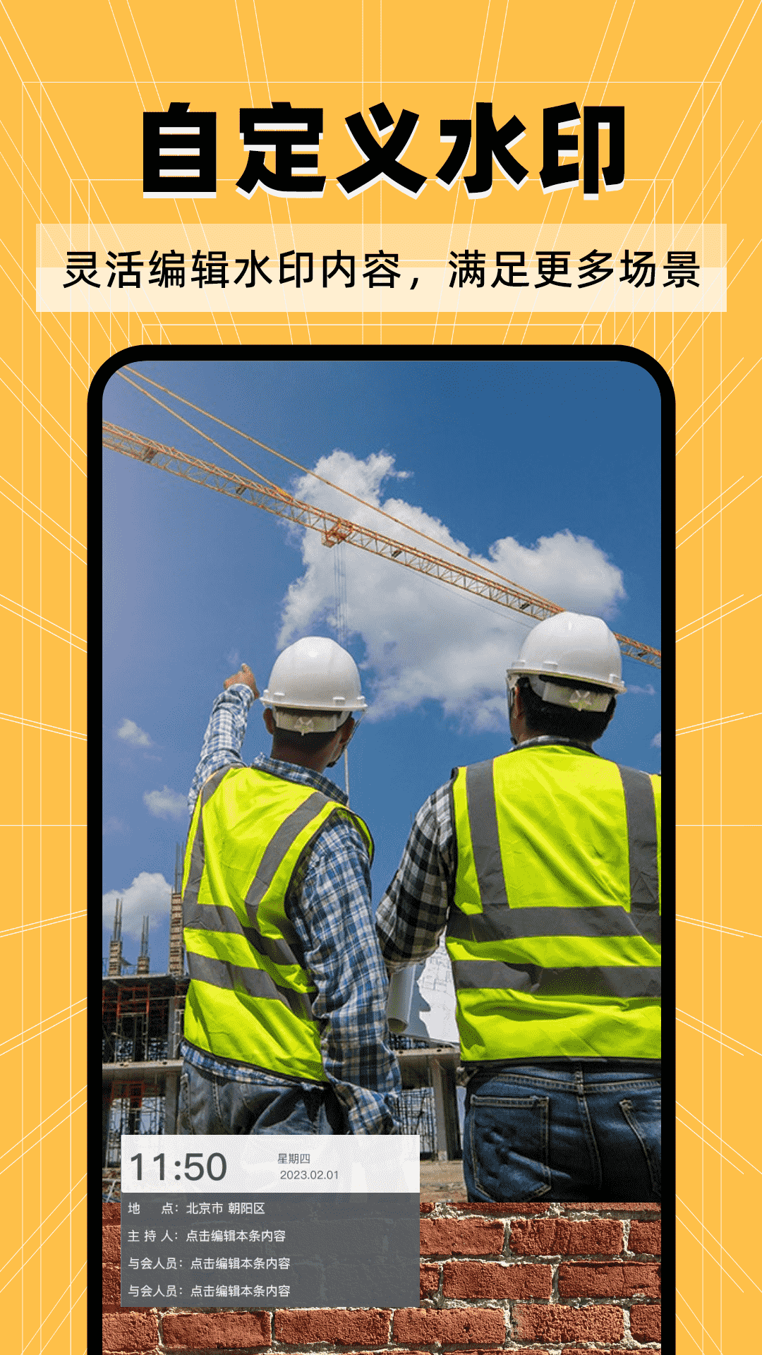 1、全新的工程现场拍照工具,可以轻松实现对工程现场进行拍照并加水印;