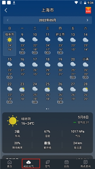 1、详细15天预报:阴晴雨雪,气温气压,风力风向,空气质量,出行无所畏惧。