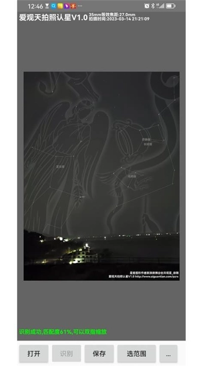 2、智能识别功能:内置智能识别算法,能够自动识别用户所观测到的星体,并提供详细的背景信息,方便用户了解每个星体的特点。