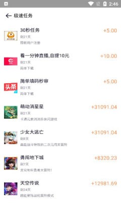 4、根据用户做的任务越来越多,红包奖励也会越来越丰厚,秒入账;