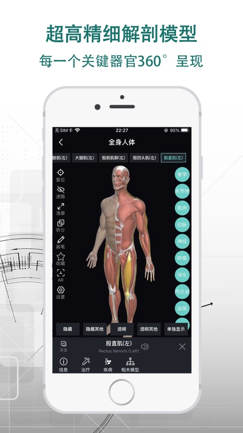 2.详细精确的3d人体解剖结构模型和医学解释,包括了人体十二大系统的3d解剖。