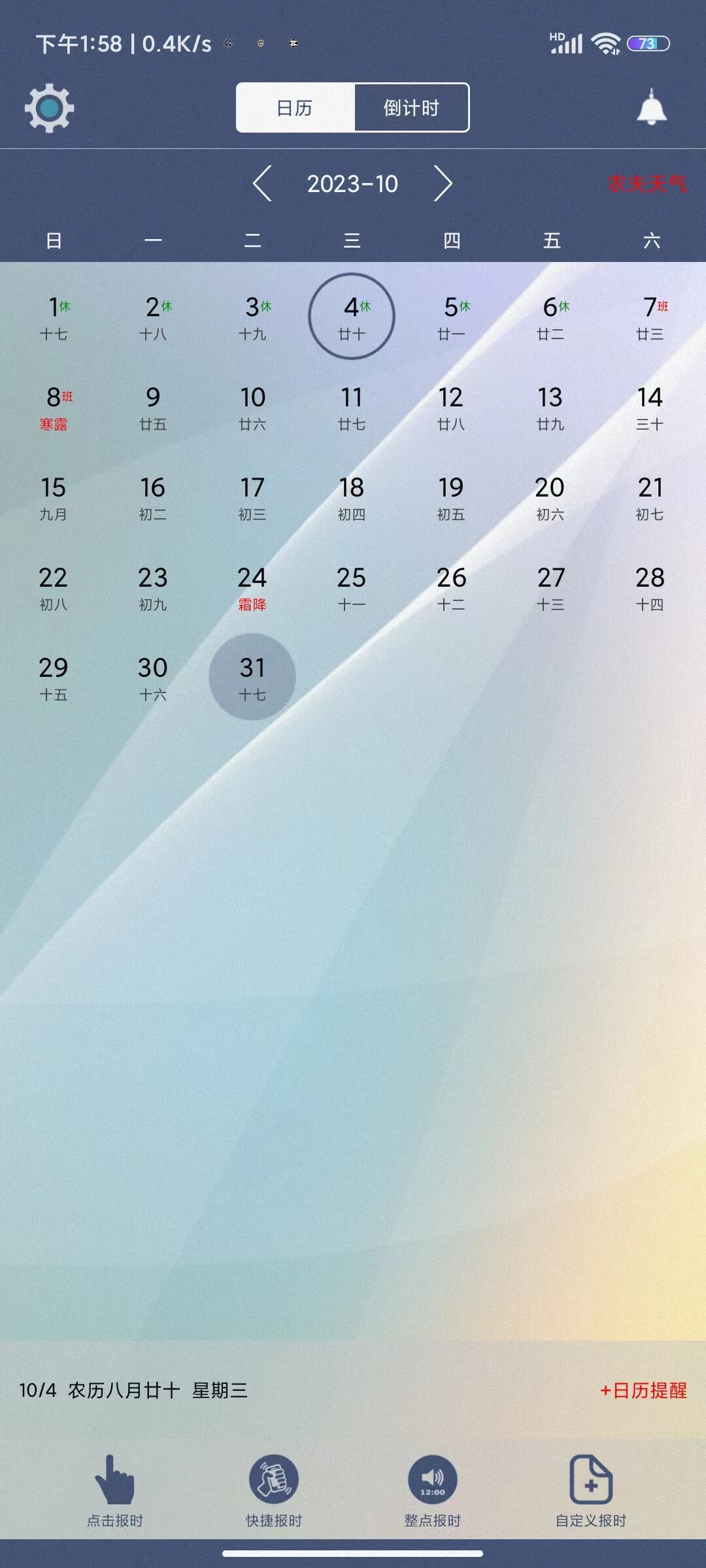 3、倒计时功能可用于各种倒计时活动,如距离某个重要节日的倒计时等,增加了软件的趣味性和多样性。