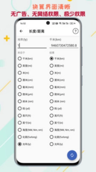 2.拥有一个简洁、美观的用户界面,让用户可以轻松、愉快地进行单位转换操作;
