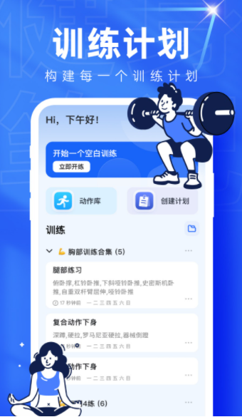 3、专业的健身训练,您可以选择软件中包含的训练,也可以自行定制。