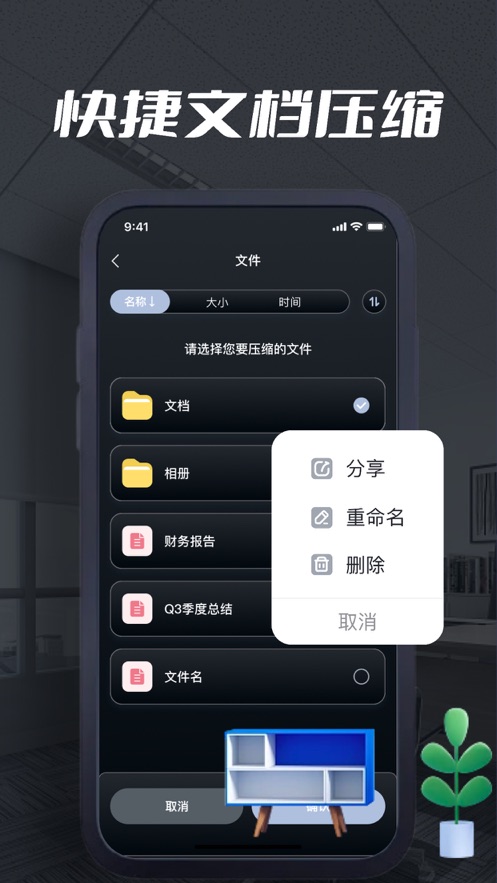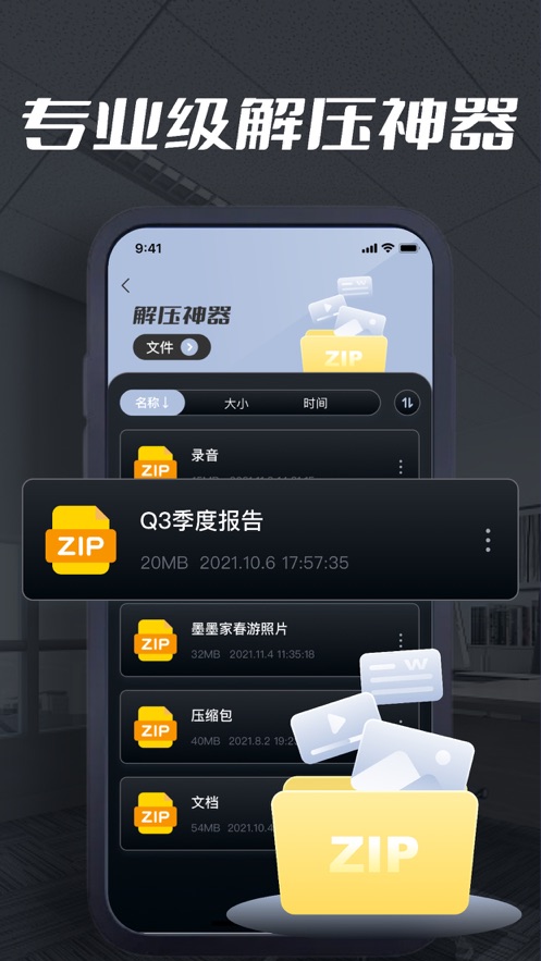1、超实用的快速解压功能,支持多种常见压缩格式,如RAR、ZIP、7z等,快捷便利;
